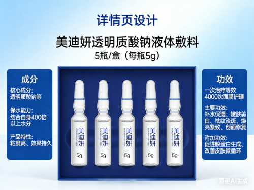 美迪妍始终秉持“Better Face Better Life”的品牌理念,深耕护肤领域技术研发,此次推出的透明质酸钠液体敷料,在成分搭配上尽显专业与严谨。产品核心成分包含透明质酸钠、无水磷酸氢二钠、磷酸二氢钠二水合物及纯化水,其中透明质酸分子因富含羧基和羟基,在水溶液中能形成密集的分子内与分子间氢键,赋予产品超乎寻常的保水能力,可结合自身400倍以上的水分,从根源上解决肌肤缺水难题。